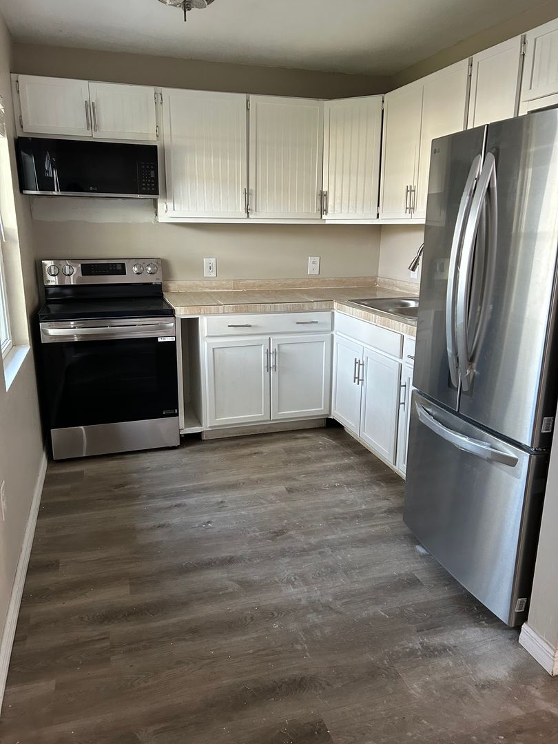 This apartment offers two spacious bedrooms with large closets, perfect for your storage needs. The apartment features a large, light-filled great room with vaulted ceilings, creating an open and airy atmosphere. The kitchen is a chef's dream with a large island and breakfast bar, new stainless steel appliances including a refrigerator, glass-topped range, over-the-range microwave, and dishwasher. Ample cabinet space its modern layout and finishes make this kitchen both functional and stylish. The apartment includes a washer and dryer hookup for your convenience.