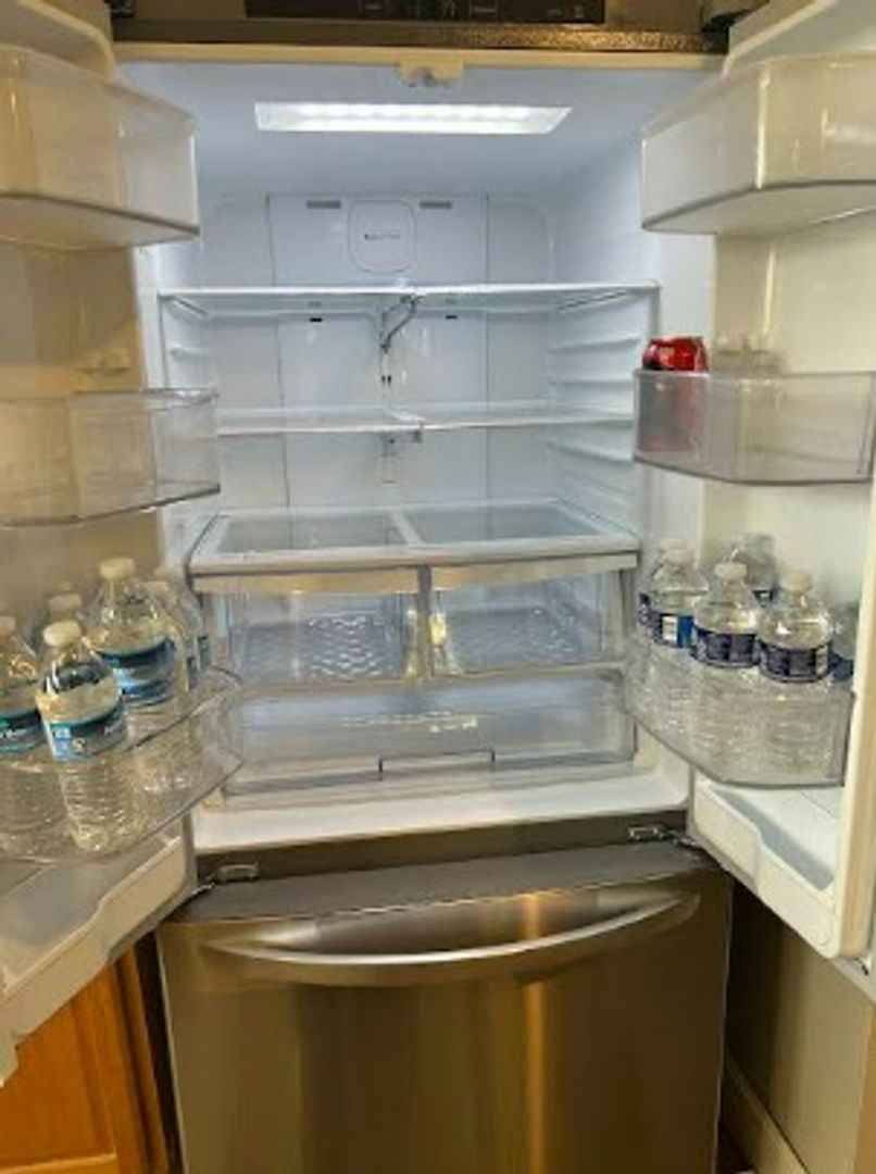 The kitchen is equipped with a new Stainless ‘Smart’ glass top range, a 'Smart' over-the-range microwave; a Stainless French Door refrigerator with an icemaker, and a dishwasher.